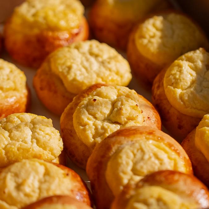 Half croissant, lightly salted salmon, cream cheese, arugula, teriyaki sauce, sesame