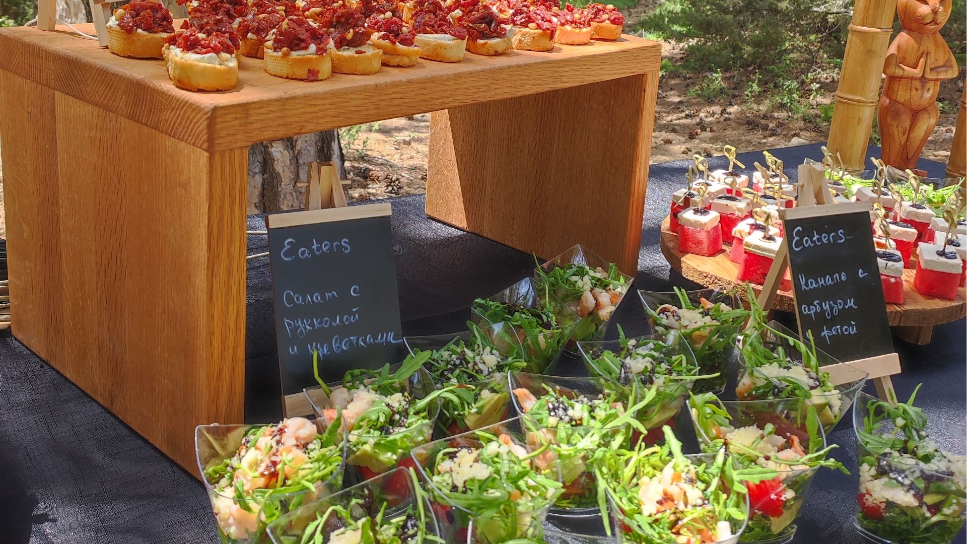 EATERS организует выездной кейтеринг для любых мероприятий — от деловых переговоров и кофе-брейков до банкетов, свадеб, детских праздников, тимбилдингов и гастрономических ужинов.